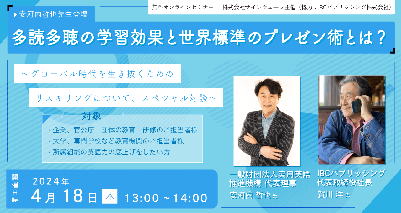 【企業人事&研修担当・教育関係者 必見】安河内哲也先生登壇!多読多聴の学習効果と世界標準のプレゼン術とは?