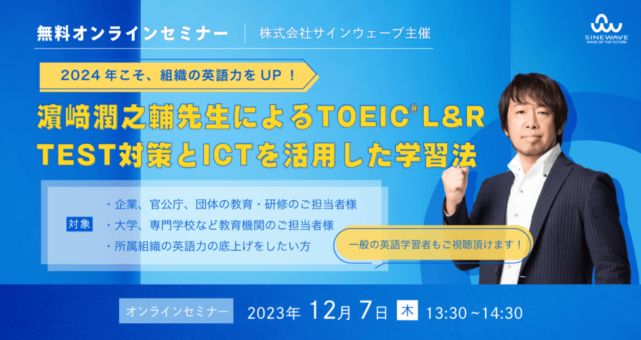 【無料オンラインセミナー】濱崎潤之輔先生によるTOEIC®L&R TEST対策とICTを活用した学習法 開催のお知らせ
