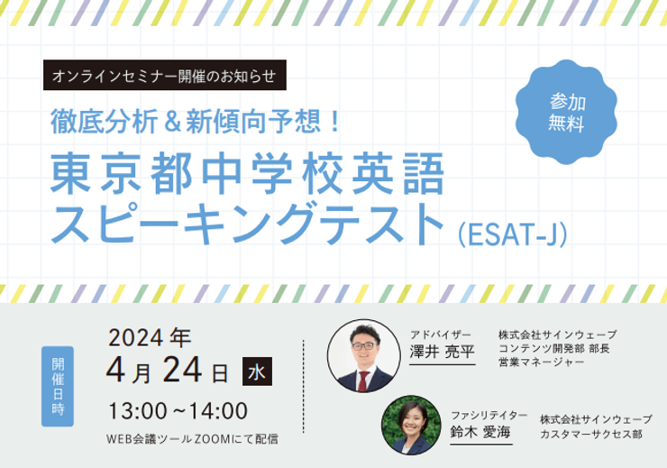 4月24日(水)13時開催!徹底分析&新傾向予想!東京都中学校英語スピーキングテスト(ESAT-J)