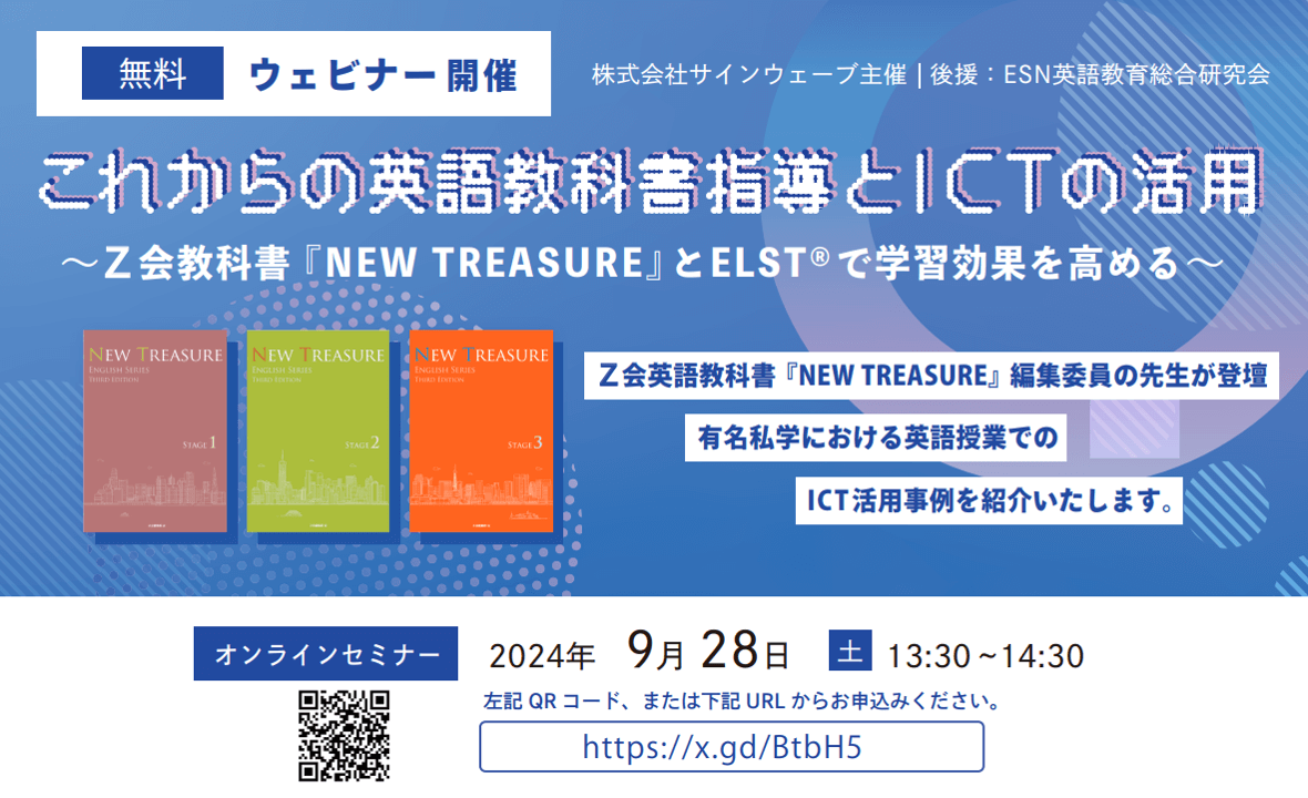 【(無料セミナー)9/28(土)/Z会 『NEW TREASURE』編集委員が登壇】これからの英語教科書指導とICTの活用(後援:ESN英語教育総合研究会)