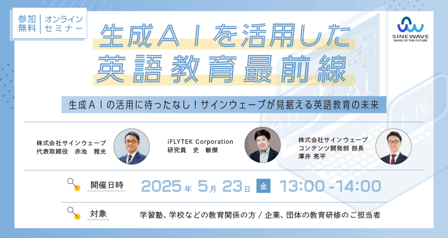【< 無料 > 5/23(金)オンラインセミナー】生成AIを活用した英語教育最前線