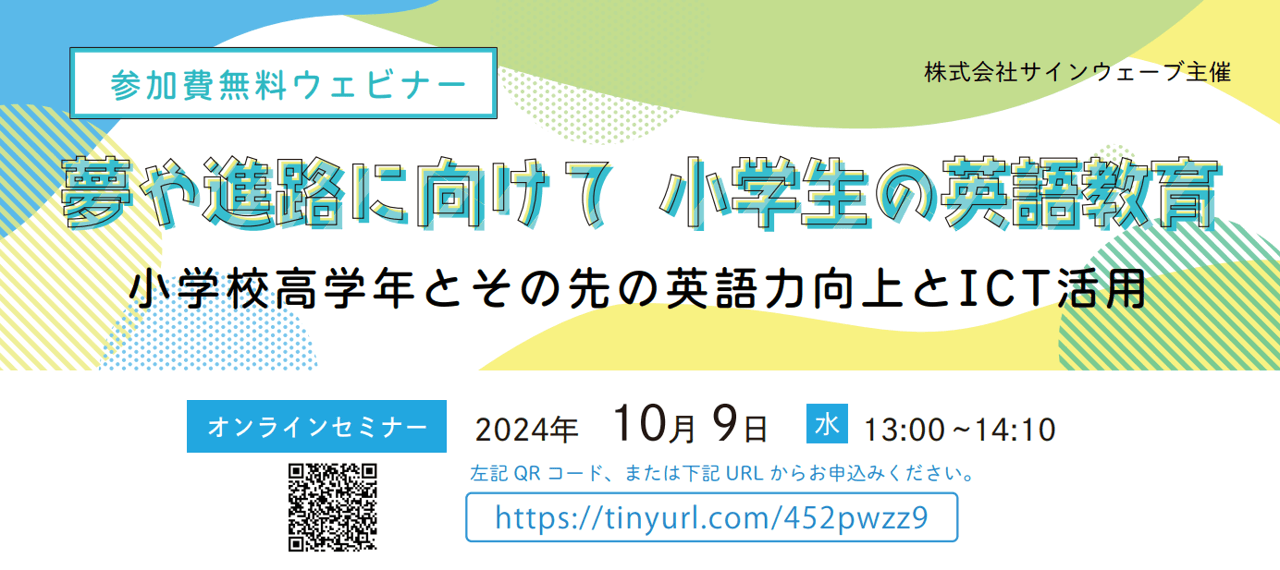 【(無料)10/9(水)オンラインセミナー】夢や進路に向けて 小学生の英語教育 (専門家と私学や塾の現場の先生による講演)